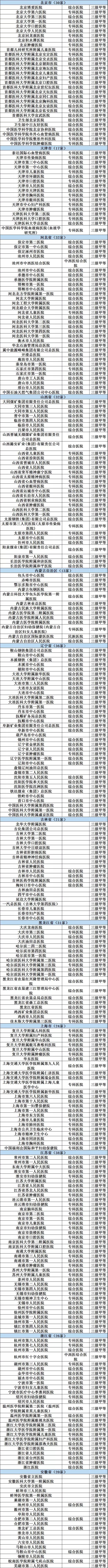 除此之外,据不完全统计,开年以来,全国范围内目前另外新审批通过71家三甲医院名单。加上去年11月、12月江苏、江西公布数量较多的两批,共有22家医院成为三甲医院(包括复审和新增)。