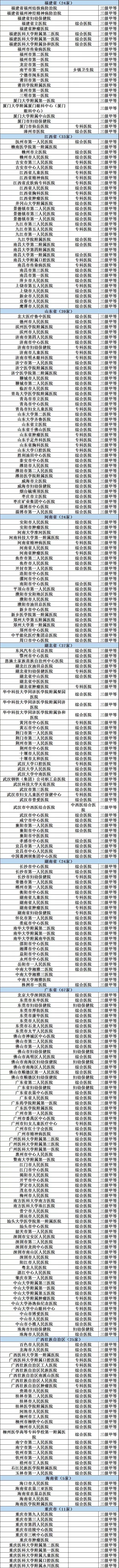 注意:以下医院不包括军队医院、中医院。