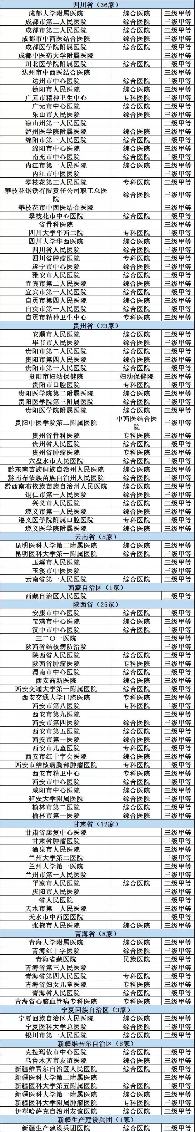 731家三甲医院名单