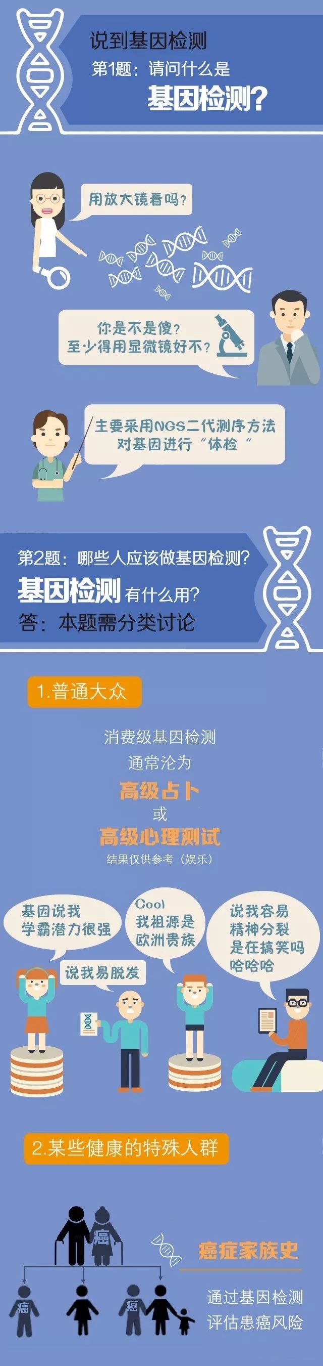 事实上,基因检测的确举足轻重。随着精准医疗时代的到来,基因检测正引导着预测医学的发展,并应用于疾病预防、基因诊断、个性化医疗等各个方面,基因检测已成为“人体使用说明书”。今天,我们就来聊一聊关于基因检测的一些小常识。